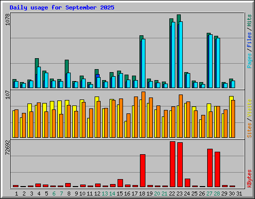 | Day | Hits | Files | Pages | Visits | Sites | KBytes | ||||||